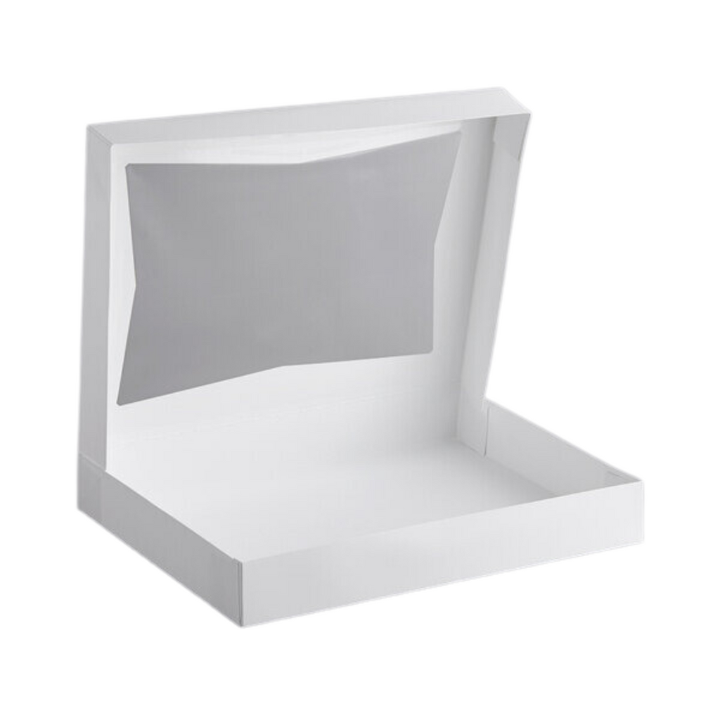 Boasting a crisp, white color and user-friendly design, this box will help you pack and present baked goods quickly and neatly. Since it's unmarked, you can quickly add custom labels and stamps for a pop of personalization. At the same time, a crystal clear viewing window provides optimal visibility, putting your delicious treats front and center for a mouthwatering display. Plus, it allows your customers to easily identify the contents as they transport the box to their next destination! Provide superior packaging in your establishment with this bakery box!